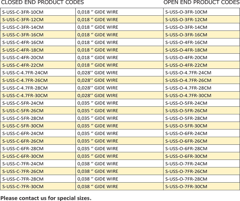 Sizes (in Fr): 3, 4, 4.7, 4.8, 5, 6 ,7