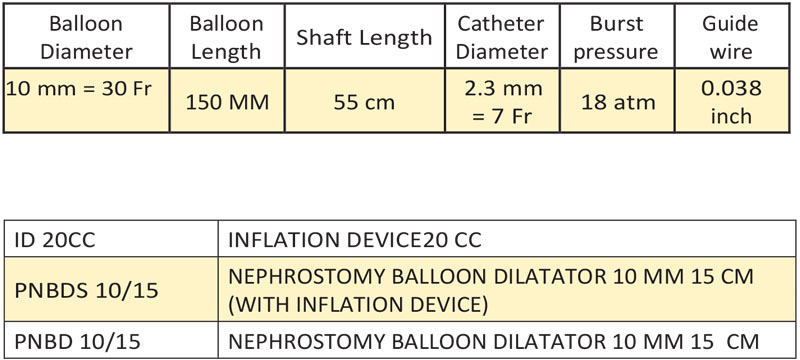 Set includes:1 pc pcnl balloon ,1 pc inner diam 30 fr 17 cm amplatz sheath ,1pc stopcock,1pc 0.038’’ guidewire , (According to special request ,inflation device with manometer available in the set)